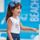 Camiseta de tirantes para niña. Cuello redondo. Suave tejido de algodón elástico. Elementos de adorno: bordados, dibujo en la parte delantera, glitter.