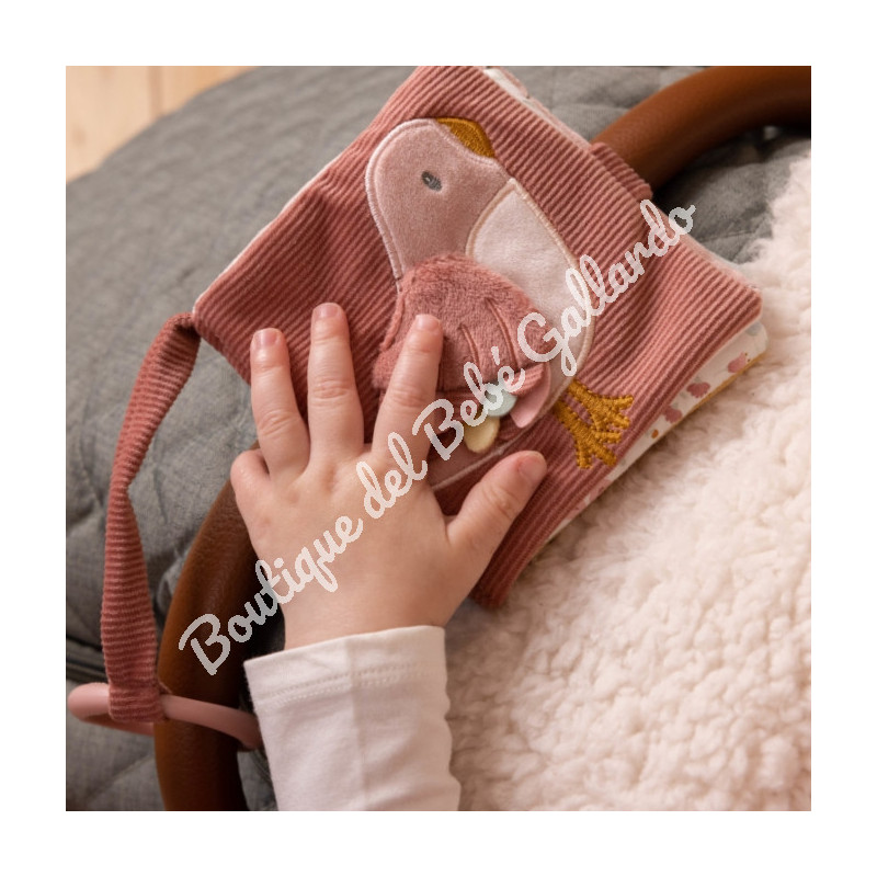 Librito blando de actividades y con anilla con un bonito pajarillo ideal para tu bebé. Es de la colección Flores y Mariposas de Little Dutch. Gracias a la anilla el libro su puede sujetar a la silla de paseo o del coche sin que se caiga.